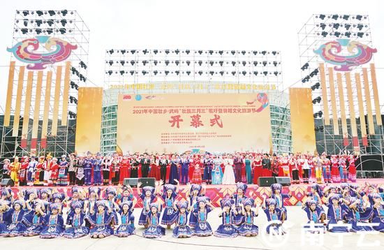 2021年中國(guó)壯鄉(xiāng)·武鳴“壯族三月三”歌圩暨駱越文化旅游節(jié)開(kāi)幕式現(xiàn)場(chǎng)。記者葉子榕 攝