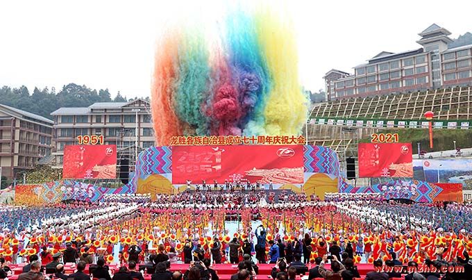 各民族同胞身著盛裝、歡聚一堂,通過民族風(fēng)情展示、龍獅展演、文藝表演、跳民族團(tuán)結(jié)舞等活動(dòng)歡慶縣慶,展示了龍勝民族團(tuán)結(jié)進(jìn)步事業(yè)全新風(fēng)貌與經(jīng)濟(jì)社會(huì)發(fā)展成果,各族人民脫貧致富的幸福感,以及各民族親如一家、共同團(tuán)結(jié)奮斗、共同繁榮發(fā)展的新氣象。