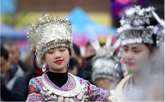 苗族頭飾主要是以銀飾為主。苗族女孩從學會走路開始,父母就會給女兒制作一套苗族民族盛裝和頭飾,苗族女孩一般6歲左右就可以參加每年的民族盛會,并且從小學習化妝技術。苗族的盛會主要集中在春節(jié)后,也叫坡會,就是山坡上的聚會,這一天苗族姑娘就會穿上珍藏已久的民族盛裝,戴上頭飾,把自己打扮的漂漂亮亮,參加蘆笙踩堂舞,展示自己的美麗一面。