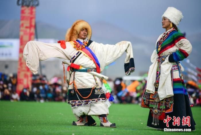 資料圖為西藏自治區(qū)拉薩市當(dāng)雄縣賽馬節(jié)上的藏族傳統(tǒng)服飾表演。 中新社記者 貢嘎來(lái)松 攝