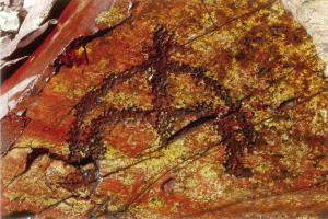 彩繪巖畫作為南系巖畫的主要代表類型,在寧夏境內(nèi)并不多見,僅在石嘴山白芨溝的一處坐北朝南的天然洞窟中發(fā)現(xiàn),巖洞敞開,可容納數(shù)百人。被發(fā)現(xiàn)的彩繪巖畫分布在高8米、長10米的崖壁上,坐西向東,以赭石顏料涂繪,有24組42幅精美的巖畫,內(nèi)容包括狩獵、騎者、牧歸,以及牛、羊、馬、狗等動物。這些罕見的彩繪巖畫時(shí)至今日依然是“養(yǎng)在深閨人未識”,更讓人擔(dān)心的是隨著環(huán)境污染造成的自然破壞已經(jīng)讓這些彩繪巖畫顏色發(fā)白,亟待引起重視,加以保護(hù)。