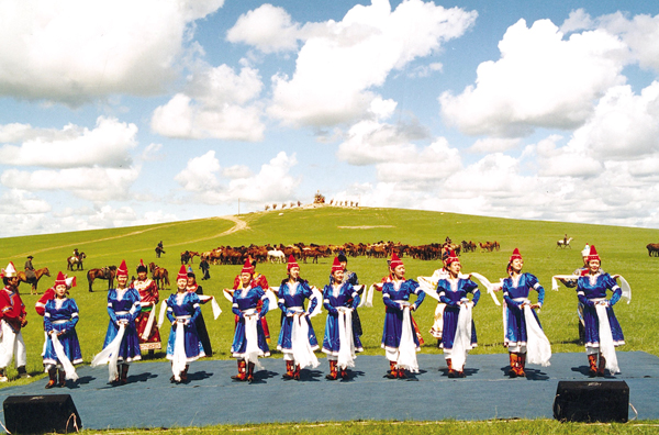 內(nèi)蒙古烏蘭牧騎的演員,吹拉彈唱跳,幾乎個(gè)個(gè)是多面手。從以前騎馬下鄉(xiāng)到現(xiàn)在坐車下鄉(xiāng),方式雖然有變,但為農(nóng)牧民演出的熱情沒有變。鄂溫克自治旗烏蘭牧騎在當(dāng)?shù)貫檗r(nóng)牧民演出都是公益性的,一年最少也有100多場(chǎng)。但自然地,由上級(jí)指派、旅游接待、大型晚會(huì)、出訪演出,則收一些相應(yīng)費(fèi)用。全年下來(lái)300多場(chǎng)。他們的演出節(jié)目,一般都有舞蹈、獨(dú)唱、重唱、馬頭琴合奏、民歌聯(lián)唱等,包括《敖包相會(huì)》、《萬(wàn)馬奔騰》等馬頭琴名曲,也有他們自己創(chuàng)作的《山林回想》、《鄂溫克大地》等獲獎(jiǎng)歌舞劇目。