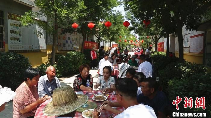 “孝善羊湯宴”將伏羊節(jié)推向高潮,當(dāng)?shù)卮迩f免費請“孝善人家”代表等“喝伏羊”?!「逗?攝