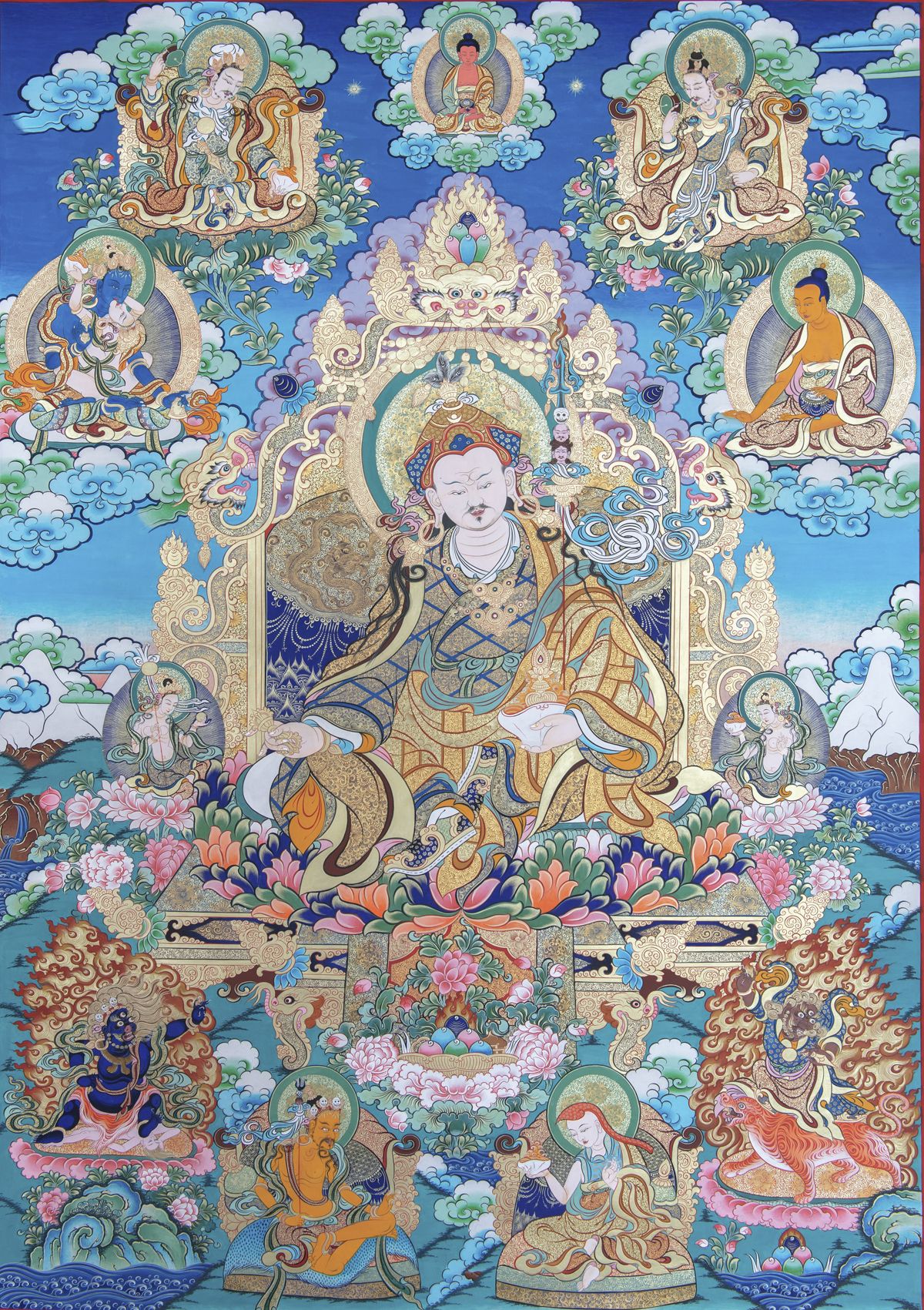 蓮花生大士(梵文 Padmasambhava)或蓮花生,印度佛教史上最偉大的大成就者之一。印度烏仗那國(guó)人,建立藏傳佛教前弘期傳承的重要人物,藏傳佛教寧瑪派祖師,無(wú)上密乘大圓滿教法的傳承祖師。密乘經(jīng)典記載,蓮花生大士是三世諸佛的總集化現(xiàn),為利益世間眾生而降臨娑婆世界。蓮花生大士集智慧、慈悲和伏惡的力量于一身,擁有無(wú)邊的法力,祈禱蓮師有不可思議的功德。在末法時(shí)代,祈禱蓮師非常重要,不管是為了自己修行順利成就,還是為了利益眾生圓滿成功,一切重大的事業(yè)均離不開(kāi)蓮師的加持。