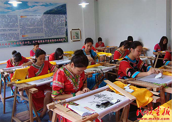 2015年,李紹玉榮獲年度“全國優(yōu)秀農(nóng)民工”。2016年,李紹玉成為重慶非物質(zhì)文化遺產(chǎn)——彭水苗繡的代表性傳承人。從一個(gè)打工女,到回家鄉(xiāng)帶動(dòng)村民致富,再到成為全國人大代表,她說自己深感榮幸和責(zé)任重大?!翱偫韴?bào)告里專門提到‘加強(qiáng)文物保護(hù)利用和文化遺產(chǎn)保護(hù)傳承’,我自己的成長,就得益于此。苗繡是苗族人民古老而美麗的技藝,我們有責(zé)任把它世代傳承下去。我們也要在苗族文化與手工藝術(shù)品融合上下功夫,使傳統(tǒng)工藝與市場結(jié)合、傳統(tǒng)元素與現(xiàn)代時(shí)尚相結(jié)合?!?/p>