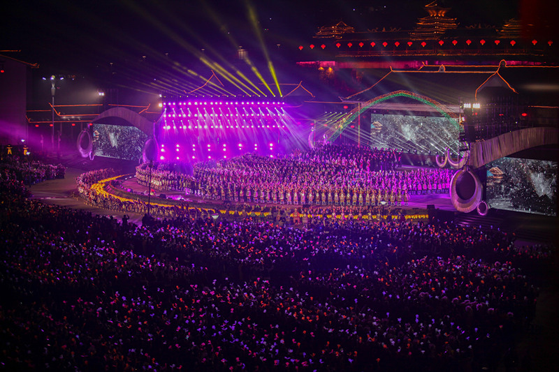 2017年12月18日,中國(guó)侗年暨第八屆侗文化旅游節(jié)在貴州省黎平縣開幕,萬人同唱侗族大歌 (瞿宏倫 / 攝)