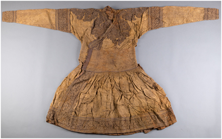 1978年出土于內蒙古包頭達茂旗明水墓的蒙元辮線袍  內蒙古博物院館藏一級文物