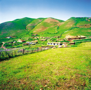 新疆維吾爾自治區(qū)昌吉回族自治州奇臺(tái)縣大泉鄉(xiāng)黑溝村村落遠(yuǎn)眺