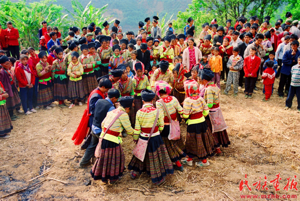 德昌傈僳族婚禮上男女青年的“打跳”“蹢腳舞” 胡小平攝影 引自民族畫報(bào)