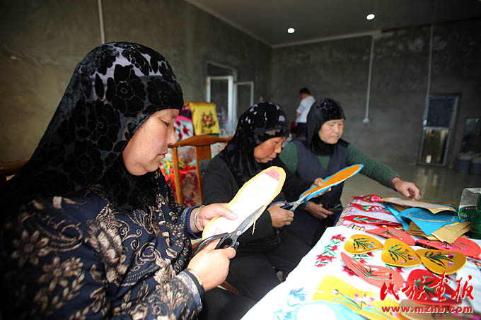 甘肅省臨夏回族自治州東鄉(xiāng)族自治縣春臺鄉(xiāng)陽洼村的東鄉(xiāng)婦女馬阿英社平常以干農活、料理家務為主。丈夫在清真寺里做事,家里主要養(yǎng)羊,種有幾畝洋芋、苞谷。自2013年被確定為建檔立卡貧困戶以來,她開始和幾個兒媳婦做起了刺繡。