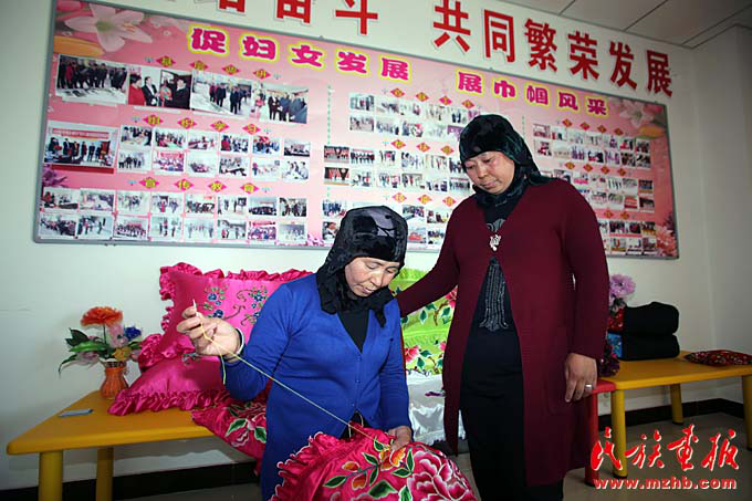 自精準扶貧實施以來,東鄉(xiāng)縣婦聯(lián)依托“隴原巧手”等項目,在縣婦聯(lián)、坪莊鄉(xiāng)、布楞溝村、汪胡村等舉辦婦女刺繡培訓班50余期,邀請專家指導教學,并統(tǒng)一刺繡品樣式和質量。把有基礎、感興趣的婦女發(fā)展成為培訓骨干。馬阿英社的妹妹馬英英是骨干之一,她對記者說:“婦聯(lián)組織我們去州上參加培訓,用所學到的編織技術帶領貧困婦女發(fā)展,更好發(fā)揮‘傳幫帶’作用?!?/p>