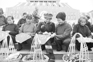 圖為文化節(jié)期間,當?shù)刎锢凶迦罕娫诹_城縣民族文化廣場,進行仫佬族特色文化展演。
