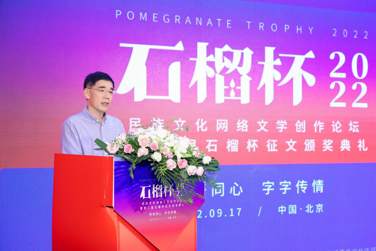 2022年9月17日,民族文化網(wǎng)絡(luò)文學(xué)創(chuàng)作論壇暨第二屆石榴杯征文頒獎(jiǎng)活動(dòng)在民族文化宮舉行。本次活動(dòng)得到了國家民委所屬中國少數(shù)民族文化藝術(shù)促進(jìn)會(huì)和中國紀(jì)實(shí)文學(xué)研究會(huì)的指導(dǎo)與支持,由閱文集團(tuán)、北京天成嘉華文化傳媒主辦,天成達(dá)星國際傳媒承辦。