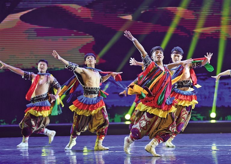 在第11屆中國舞蹈“荷花獎(jiǎng)”評(píng)選中,13位身著蒙古袍、顫顫巍巍的“爺爺”拄著拐杖奪得金獎(jiǎng)?!盃敔敗笔种械墓照葧r(shí)而變成自拍桿,時(shí)而又變成馬頭琴,風(fēng)趣靈動(dòng)的蒙古舞與流行樂混搭得異常和諧,呼和浩特民族演藝集團(tuán)編創(chuàng)的舞蹈《爺爺們》如同不一樣的煙火,在二十一世紀(jì)的蒙古舞星空炸裂出別樣的絢爛。2019年,內(nèi)蒙古舞蹈迎來高光時(shí)刻,民族舞劇《草原英雄小姐妹》斬獲文華大獎(jiǎng),填補(bǔ)了內(nèi)蒙古在文華獎(jiǎng)?lì)I(lǐng)域的空白;由鄂爾多斯民族歌舞劇院編創(chuàng)的舞蹈作品《黑緞子坎肩》捧回第12屆中國舞蹈“荷花獎(jiǎng)”小金人。在似錦繁華迷人眼的舞壇,蒙古舞憑借勃發(fā)的民族生命力和強(qiáng)大的藝術(shù)感染力獨(dú)領(lǐng)風(fēng)騷。