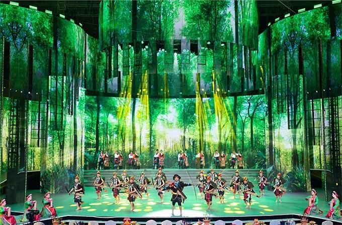 在舞美上,晚會(huì)傾力打造中華文化概念,突出鑄牢中華民族共同體意識(shí),建構(gòu)熱烈祥和的觀演環(huán)境、身臨其境的現(xiàn)場(chǎng)體驗(yàn)、自然流暢的互動(dòng)場(chǎng)景,以更炫麗、更時(shí)尚、更具生命力的節(jié)目?jī)?nèi)容和形式,為觀眾提供技術(shù)與藝術(shù)完美結(jié)合的視聽盛宴。主創(chuàng)人員別具匠心地把舞臺(tái)設(shè)計(jì)成一個(gè)具有民族特色的大客廳,寓意各族兄弟姐妹溫暖團(tuán)聚,營(yíng)造既有民族特色又有時(shí)代氣息的視覺空間。