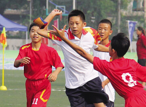 19日舉行的開幕式文藝表演《鼓舞你我他》,特別突出了體育元素和民族元素的結(jié)合,1000余名來自北京市各行各業(yè)的非專業(yè)演員參與演出。(上圖為運動會開幕式現(xiàn)場;下圖為運動會綾球比賽現(xiàn)場。)