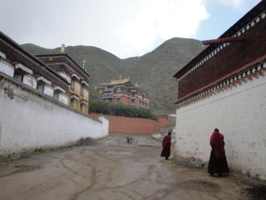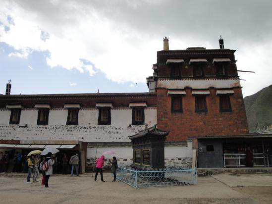 在狹長的盆地上,各式建筑星羅棋布,金瓦紅墻,雕梁畫棟,華麗非凡。僅圍墻就長達3公里余。五百多間連續(xù)回廊及一千多個“嘛呢轱轆”,將寺院與外界隔絕。整個寺院外部墻垣、院地、臺階均以石砌為主,內(nèi)部戶限、柵欄、棟梁、門栓均以木料為主,故有“寺院外不見木,內(nèi)不見石”的說法。