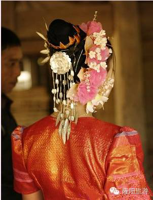 男方家也得請(qǐng)客。新郎啟程去接新娘子,家里馬上就殺雞做飯,新郎新娘回來后要吃染成黃色的糯米飯和雞肉,表示往后生活美滿幸福,像糯米飯一樣結(jié)成團(tuán)永不分開。晌午時(shí)分,是新郎家待客最熱鬧的時(shí)候,幫廚的人擺上各種酒菜,親朋寨鄰老老少少全坐到天井里,歡歡鬧鬧地吃飯。最后,客人們有的陸續(xù)走了,愿留下的湊攏幾桌,邊喝酒邊暢談,一直要吃到第二日還不歇。