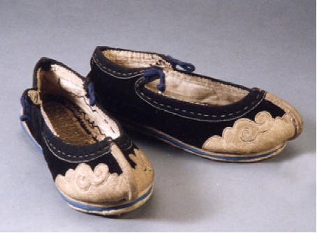 一般來說,一套傳統(tǒng)羌族服飾包括長衫、坎肩、褲子、腰帶、圍腰、裹肚、帽子、鞋子等。一件羊皮坎肩需要兩張羊皮,制作時將羊皮浸泡在草木灰中發(fā)酵,用木銼子除去腐肉、油污,直至羊皮光滑后再縫制。羊皮坎肩四季均可穿,有“羊皮褂子兩面穿,天晴下雨不離肩”的俗語。坎肩無領、無袖、無扣,四周露出羊毛,晴天毛向內穿,雨天毛向外穿,可作墊背,負重等,也可防寒、避雨;圍腰屬于婦女特有,有半襟和滿襟兩種,多用深藍色或黑色布料。半襟圍腰略成長方形,長約70厘米、寬約60厘米,圖案完全對稱。圍腰上的包袋是重點裝飾部分。滿襟圍腰上窄下寬,呈“凸”字型,一般長為90厘米、底寬74厘米、胸寬20厘米,袋包多為一個大包或兩個相連的小包,位于圍腰中心,圍腰上布滿各種圖案,有團花、火盆花、升子印、窗子格、燈籠須。這些復雜繁多、結構巧妙的羌繡工藝,具有濃厚的羌族特色;羌族有草鞋這種日常鞋子,也有“云云鞋”。云云鞋的鞋尖微翹,貌似小船,鞋底較厚,以各色布包邊,用麻線密納,增強了鞋子的耐磨性。鞋幫繡有各形的彩色云紋,水波或杜鵑花紋式樣,故名“云云鞋”,也稱“花鞋”。羌族姑娘常將自己親手制作的花鞋送給小伙子,當作定情信物。現(xiàn)在,羌族人將云云鞋當作節(jié)日的盛裝,只有在重大節(jié)日時才穿。