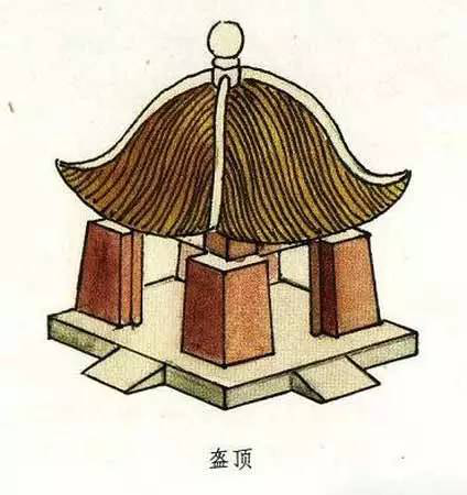 盝頂,是一種較為特別的屋頂形式。這種屋頂形式是在屋頂上有四條與屋檐平行的屋脊,四條屋脊構(gòu)成一個(gè)長方形或正方形的平頂,其四角各有一條垂脊向下斜伸,共形成四塊坡檐。盝頂這種頂式在古代大型宮殿建筑中極為少見。