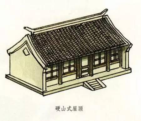 硬山式屋頂有一條正脊和四條垂脊。這種屋頂造型的最大特點(diǎn)是比較簡單、樸素,只有前后兩面坡,而且屋頂在山墻墻頭處與山墻齊平,沒有伸出部分,山面裸露沒有變化。明、清時(shí)期及其后,硬山式屋頂廣泛地應(yīng)用于我國南北方的住宅建筑中。正因?yàn)樗燃壉容^低,所以屋面都是使用青瓦,并且是板瓦,不能使用筒瓦,更不能使用琉璃瓦。