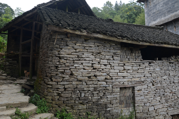 石板房以石條或石塊砌墻,墻可壘至5至6米高;以石板蓋頂,風(fēng)雨不透。總之,除檁條、椽子是木料外,其余全是石料,甚至家用的桌、凳、灶、缽都是石頭鑿的。一切都樸實(shí)無華,固若金湯。這種房屋冬暖夏涼,防潮放火,相對采光較差。
