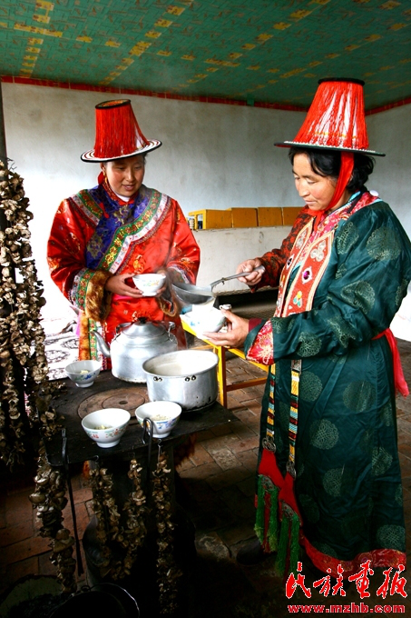 酥油奶茶是裕固族招待貴客的飲料,它們能夠幫助遠道而來的客人抵御風(fēng)寒
