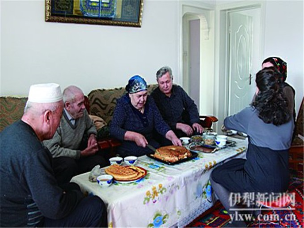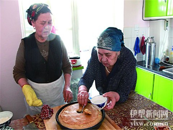 她回憶,小時(shí)候,他們家住在伊寧市六星街。家里有個(gè)大大的院子,院子里有棵茁壯的杏樹(shù),杏樹(shù)下是一方土打的正方形的拱形烤爐。那時(shí)候,塔塔爾族人家的院子里,都會(huì)有這樣一方大烤爐。她的母親就常在大杏樹(shù)下忙碌,烤餅干、列巴、拜列西。一烤起來(lái),滿院子都是烘烤的食物的馨香?!澳赣H手巧得很,什么都會(huì)做?!辟I(mǎi)斯胡旦說(shuō),臉上現(xiàn)出回想母親健在時(shí)所帶來(lái)的溫馨神情。