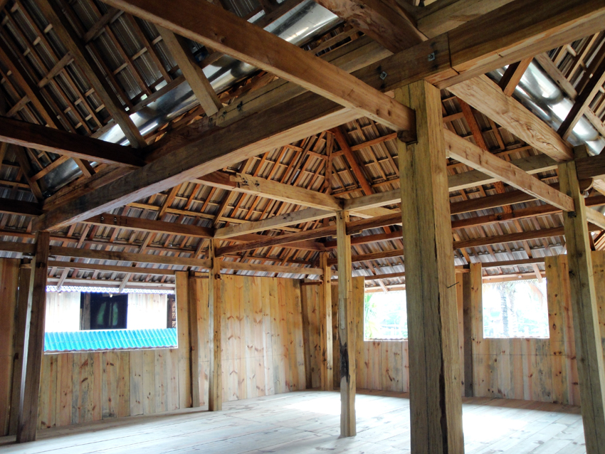 西雙版納傣族竹樓多為方形,分上下兩層,上層為居住層,堂屋、臥室各一間,外有開放的前廊和曬臺,樓下架空。堂屋中設火塘,供日常飲食、待客。火塘常年火不滅。臥室為一大通間,在樓面上鋪墊、掛帳,席地而臥,家中數(shù)代同室而寢,睡覺位置按長幼次序排列,長輩靠里,晚輩靠外。傣族一般不歡迎外人進入臥室。屋頂為歇山式,脊短,坡陡,下有披屋面即偏廈,有重檐屋頂遮陽擋雨。一般沒有窗戶,墻及樓板多縫隙,可以通風,達到了室內(nèi)陰涼的效果。
