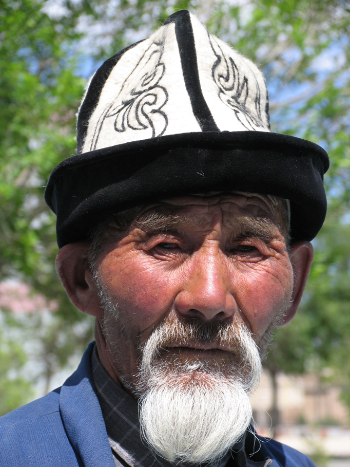 柯爾克孜族男子戴著白色氈帽(劉軍攝)