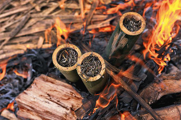 德昂族種茶的歷史悠久,茶在德昂族民間不僅是常備的飲料,也是饋贈(zèng)親友的最好禮品。外出必須砍一段楠竹,削個(gè)斜口,放入茶葉注入泉水,用火燒開(kāi)飲用,別有一番香味。德昂族也飲酸茶,又稱(chēng)濕茶,古時(shí)稱(chēng)之為谷茶或沽茶。制酸茶時(shí)在茶葉中加少許檳榔,放入大竹筒中壓實(shí),密封筒口,存放一至兩個(gè)月發(fā)酵后取出,入嘴細(xì)嚼,味酸澀,能生津解渴,并有解暑清熱、消食的作用。