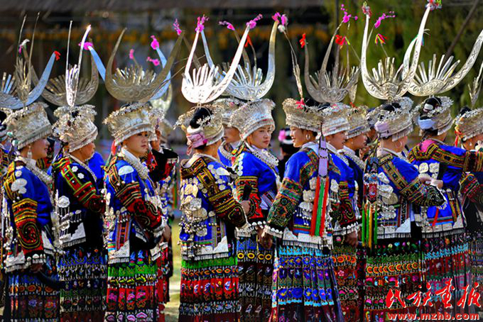 過苗年時(shí),貴州苗族未婚少女穿戴起了體現(xiàn)家庭財(cái)富的銀飾。郭建軍攝影,引自民族畫報(bào)
