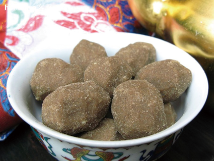 甘肅甘南藏區(qū)的灌湯包子、蕨麻米飯是有名的特色食品。做蕨麻米飯時,先將大米和蕨麻洗凈加適量的水在鍋里煮,待煮熟后加酥油白糖食用,蕨麻是一種野生食材,也叫人參果,味甜且富有營養(yǎng)。灌湯包子是牛肉或羊肉加板油和蔥剁碎,再加各種佐料和成餡兒,餡兒要很稀,然后包成包子,蒸熟的包子里面有湯,所有叫灌湯包子。藏族的特色食品很多,土豆咖喱飯、灌血腸、灌肉腸、灌羊肺等。