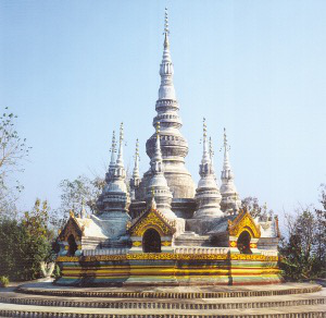 云南勐龍曼龍飛筍塔。勐龍曼飛龍筍塔始建于公元1204年,塔群造型緊湊,挺拔多姿,諸塔擁立,猶如雨后春筍,故得名。主塔尖端是銅制的風笛,小塔頂部掛有銅制佛標式的風鈴,山風吹來,大小塔清脆的應(yīng)和聲響引人遐想。