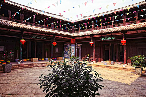 雖然經(jīng)過歲月侵蝕,但院落的每一個(gè)角落,無論是精心裝飾的門楣還是匠心獨(dú)具的花窗,盡管經(jīng)過了多少年的風(fēng)雨,依然令人感到當(dāng)年的氣魄和獨(dú)有的魅力。在馬如驥大院的二樓,那藻井的彩繪今天依然清晰美麗,有彩繪《三文筆》、《阿文學(xué)?!?、《雞足山莊嚴(yán)塔》、《上海街景》。特別是彩繪《上海街景》,被專家視為不可多得的珍貴資料,它不僅惟妙惟肖的再現(xiàn)了當(dāng)年十里洋場上海灘的風(fēng)華,還體現(xiàn)了馬幫商人的開放胸襟和開闊眼界,體現(xiàn)了對現(xiàn)代化生活的向往和對未來的憧憬。