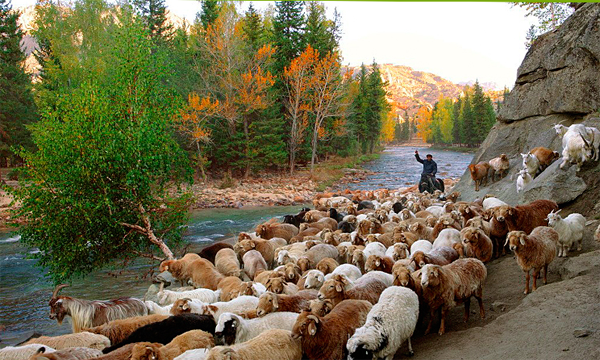 我國(guó)的主要牧業(yè)區(qū)在內(nèi)蒙古自治區(qū)、新疆維吾爾自治區(qū)、西藏自治區(qū)和青海省、四川省與云南省。從事畜牧業(yè)經(jīng)濟(jì)的主要有蒙古族、藏族、哈薩克族、柯?tīng)柨俗巫濉⑺俗?、裕固族,養(yǎng)殖牛羊較多的還有回族、維吾爾族、彝族、羌族、納西族等民族。畜牧業(yè)生產(chǎn)為廣大群眾提供了豐富的肉制品和乳制品。新疆蒙古族牧民晾曬羊肉干被稱為蒙古羊系之冠的“烏珠穆沁肥尾羊”,成年公羊重達(dá)100多公斤,光尾巴就有10公斤重,肉美味鮮,肥而不膩,鮮而不膻,北京“東來(lái)順”的涮羊肉采用的就是這種羊肉,受到中外賓客普遍稱贊。內(nèi)蒙古自治區(qū)養(yǎng)殖的三河羊和草原紅牛也是肉乳兼用的優(yōu)良品種。