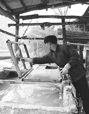有關博物館專家研究發(fā)現,石橋古法造紙工藝流程與明朝宋應星著《天工開物》記載的圖解基本一致,因而認定是漢代到唐代這一時期的造紙工藝,距今已有一千四五百年的歷史。