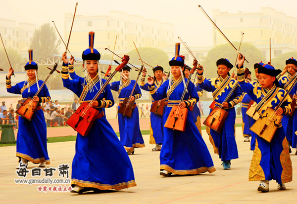 2017年9月至10月,在肅北首屆“絲綢之路那達(dá)慕”文化旅游節(jié)開(kāi)幕式以及“喜迎黨的十九大 同心筑夢(mèng)向未來(lái)”肅北國(guó)慶專場(chǎng)演出中,肅北縣烏蘭牧騎推出了全新舞蹈《雪山歡歌》及馬頭琴齊奏《雪山琴韻》等,充分表達(dá)了雪山蒙古人的一片豪情與向往。