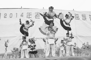 圖為當(dāng)?shù)孛缱迦罕娬谡寡輫壹?jí)非遺“滾山珠”。