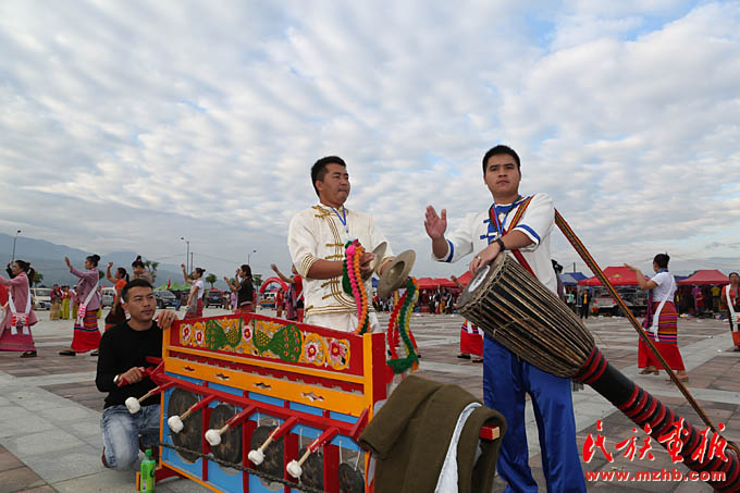 廣場(chǎng)上,來(lái)自瑞麗市、隴川縣的傣族演員跳起了噶秧舞。來(lái)自瑞麗市民間傣協(xié)會(huì)的巖保告訴記者,每年的新年慶典活動(dòng)德宏州各個(gè)縣市的民間傣協(xié)會(huì)都會(huì)互相往來(lái)。在傣歷新年,傣族群眾要用“趕擺”的方式慶祝新年的到來(lái),并相互致以對(duì)新一年美好生活的祝愿。