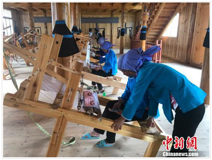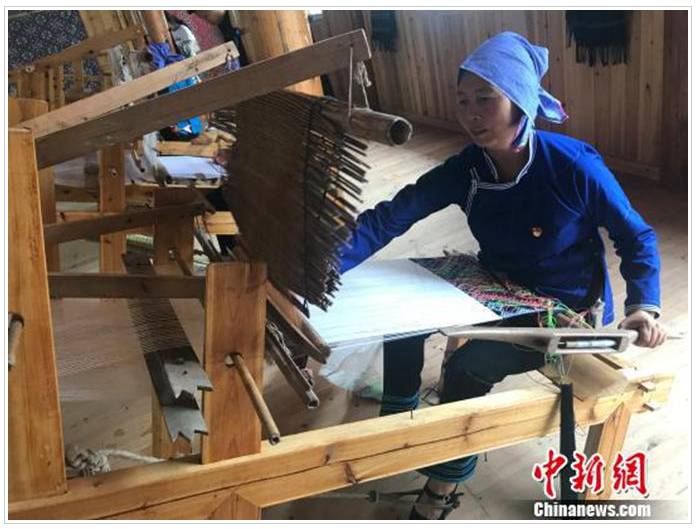 聽(tīng)聞姐姐在這里織錦每月可拿到3000多元的收入,今年7月,此前在廣東務(wù)工的文坡村二組村民龍練霞干起了這份家門口的工作,再也不想外出了?!凹确奖阏疹櫦胰耍挚梢猿榭崭牲c(diǎn)農(nóng)事。”今年30多歲的龍練霞說(shuō)。和她一樣,看到侗錦的銷路慢慢打開(kāi)了,村里許多在外務(wù)工的年輕人也紛紛返鄉(xiāng),拾起祖輩們的老手藝。