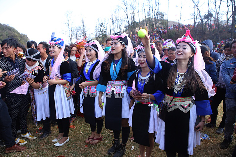 由于在歷史上經(jīng)歷長(zhǎng)時(shí)間、大范圍的遷徙,苗族文化形成了較強(qiáng)的環(huán)境適應(yīng)能力和流動(dòng)變遷特征。節(jié)日作為民族文化的凝集點(diǎn),慶祝方式和形態(tài)也處于動(dòng)態(tài)的演變和傳承之中。在大布紅的花山場(chǎng),一個(gè)從老撾過(guò)來(lái)的苗族女子樂(lè)隊(duì)讓當(dāng)?shù)氐拿缱迦烁械胶闷妗f(shuō)著同樣的西部苗語(yǔ),卻穿著略顯不同的衣服。她們排成一行,教人們一來(lái)一往地扔繡包,一時(shí)間圍觀者無(wú)數(shù)。不消多久,女子樂(lè)隊(duì)手中的CD就在人群中銷售一空。