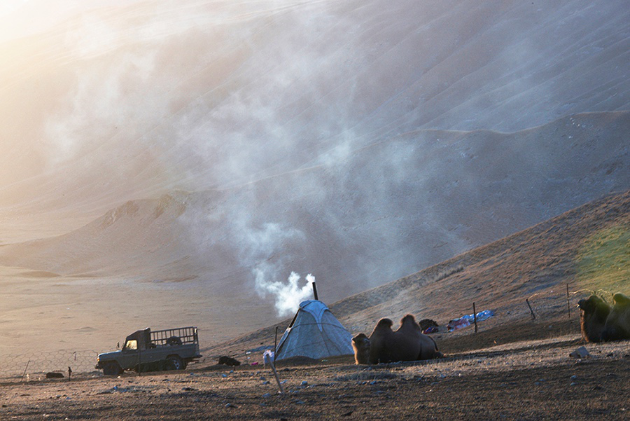 搬進(jìn)城里之后,蒙古人多種擇業(yè)的可能和他們遠(yuǎn)離草原以后的種種行為,很難與數(shù)千年蒙古人的歷史形象與定位相符。彭才一家的狀態(tài)與所用的氈包,讓我有一種久違的親切感。氈包和類似于氈包的種種信息,都在給你描述一種安適、踏實、畜糞煙火繚繞的氛圍。