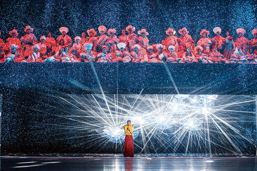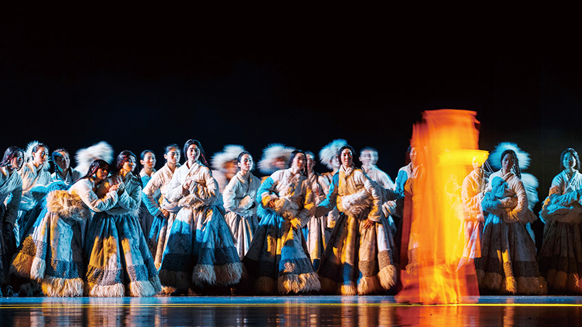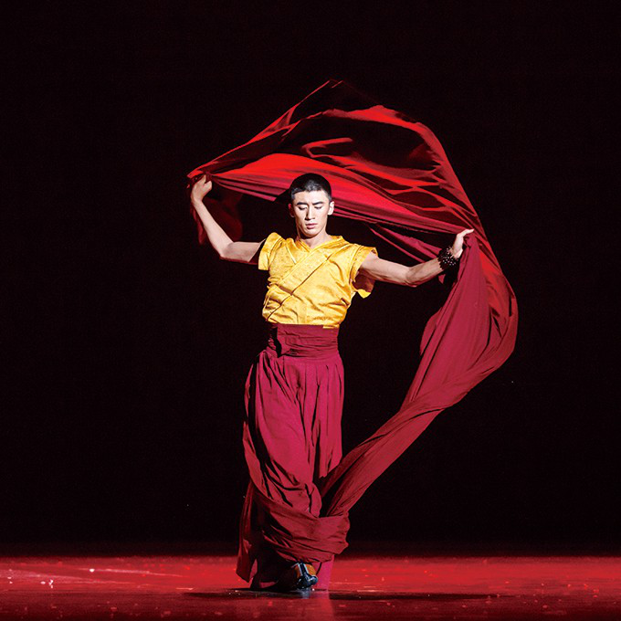 2015年12月27~29日,中央民族歌舞團大型原創(chuàng)舞劇《倉央嘉措》在民族劇院隆重上演,引起轟動。這是2015年度國家藝術(shù)基金最高資助項目,也是中央民族歌舞團建團60余年來創(chuàng)排的首部舞劇。它由中央民族大學(xué)博士生導(dǎo)師丹珠昂奔教授編劇,國家一級導(dǎo)演、中央民族歌舞團團長丁偉擔任總導(dǎo)演,國家一級作曲家李滄桑、著名舞臺服裝設(shè)計師麥青等國內(nèi)知名藝術(shù)家聯(lián)袂制作。舞劇共分五幕,時長159分鐘,參與演出的舞蹈演員有60多人。劇組通過海選的形式,選出3名年齡分別為14歲、17歲、20歲的優(yōu)秀舞蹈演員扮演不同時期的倉央嘉措。整部舞劇通過豐富的舞蹈語言以及精心制作的音樂、服裝、舞美,將主人公倉央嘉措對故鄉(xiāng)、母親的熱愛以及對愛情的向往淋漓盡致地展現(xiàn)在舞臺上,同時集中展示了他身后燦爛而輝煌的民族文化。
