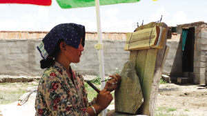 和日村村民正在刻石經(jīng)。 馮雪紅拍攝