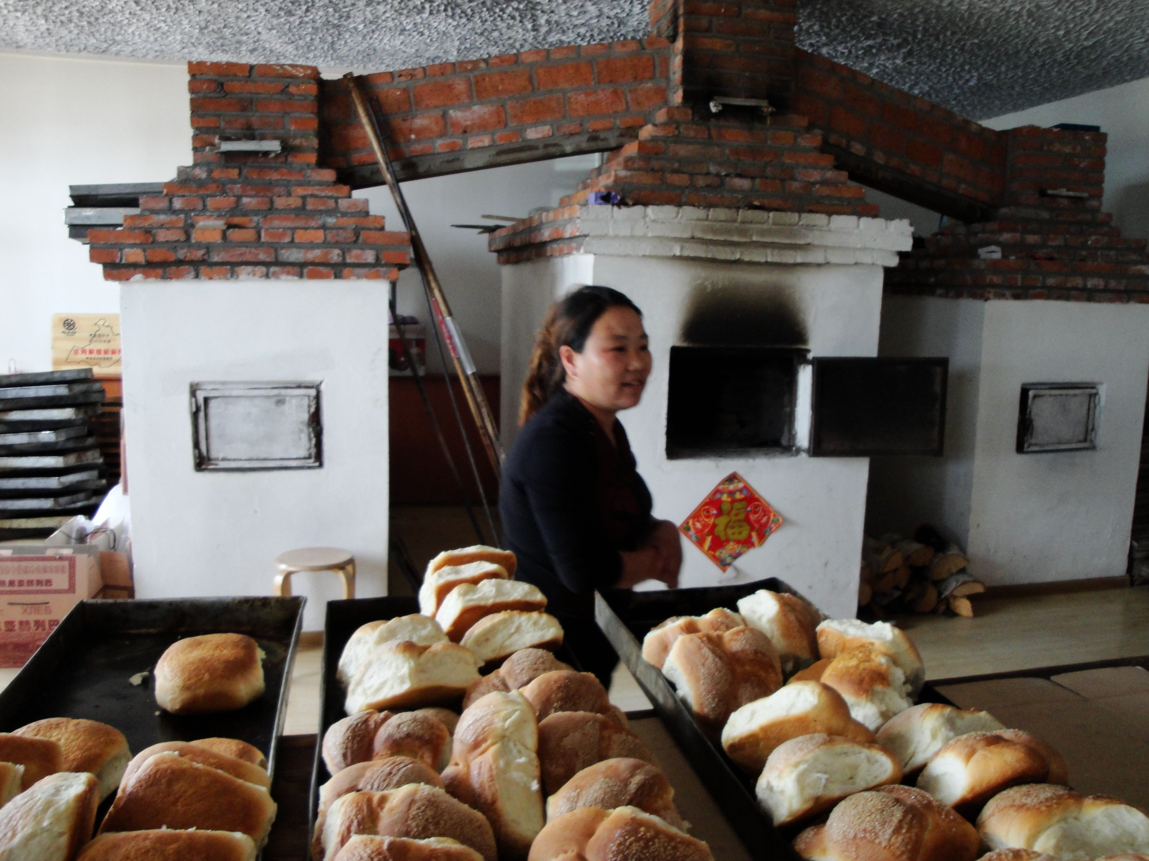 圖片說明:村民烤制的俄羅斯族傳統(tǒng)食品列巴