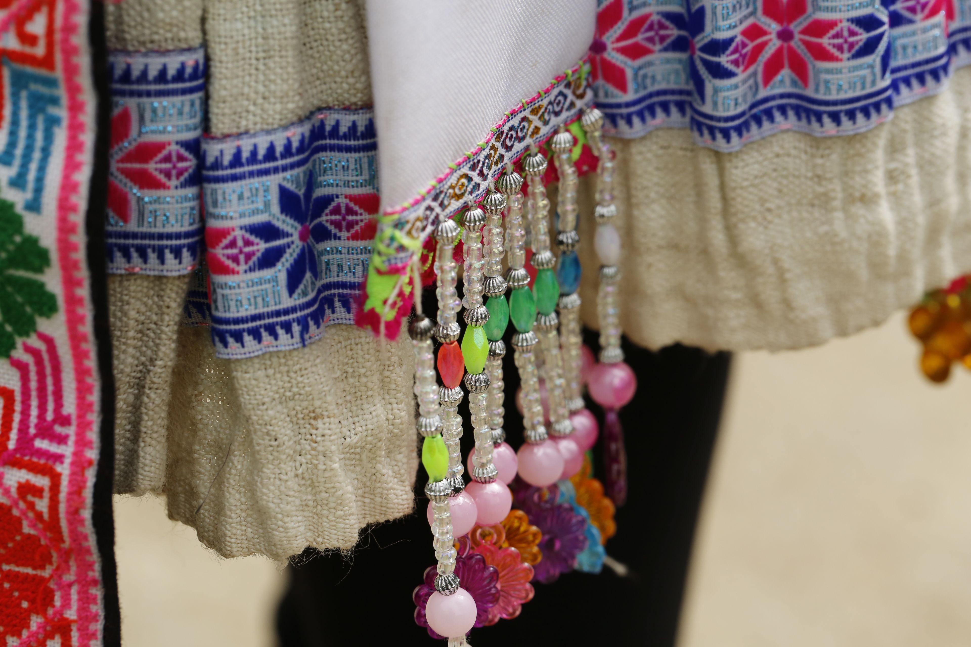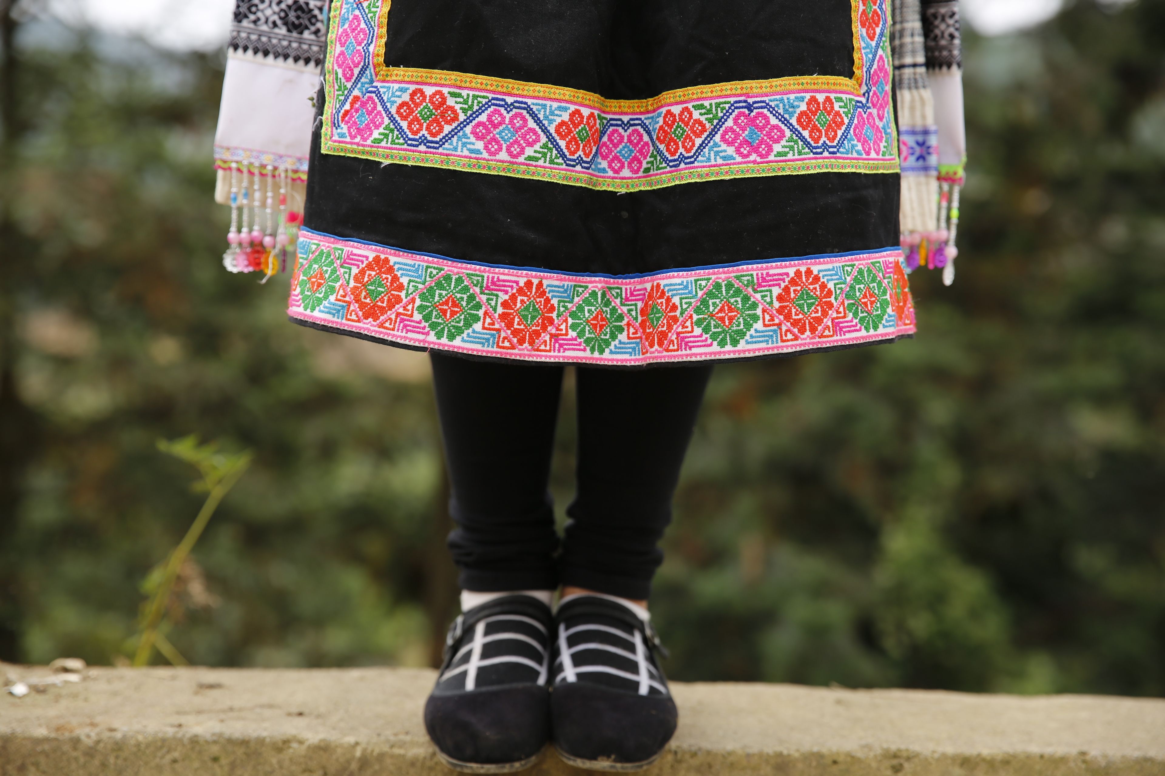 苗族女子服飾花帶百褶裙-裙擺背面