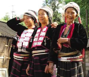 另有一個(gè)傳說則是這樣的:德昂族先民從葫蘆中來,女人們一出來就飛上了天,男人們?yōu)榱怂┳∨?,就用藤篾做成了腰箍,套在女人的身上。從此女人不再滿天飛,安安心心地同男人建立家庭,過上美滿生活。