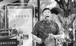 后來,在一個民俗文化節(jié)上,吳家耀手執(zhí)龍舟杖表演龍舟說唱的情景,引起了媒體的關注。他還帶著這一根龍舟杖,把龍舟說唱唱到了北京天壇,連不懂粵語的老北京也聽得津津有味。