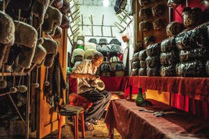 阿布都瓦克·吐爾洪老人,今年63歲,他是阿熱亞路帽子巴扎的手工藝人,店里出售的羊羔皮帽都是他親手制作的。1998年見到他的時候,他的鋪子非常簡陋,街巷四周塵土飛揚。在巴扎工作近30年,老人見證了喀什古城的發(fā)展變遷。